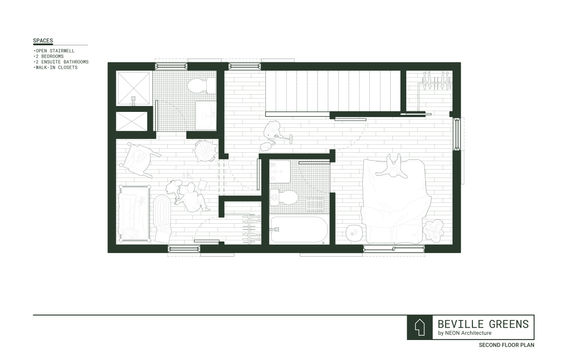 Each of the sustainably-focused homes are just over 1100 square feet and challenge the notion that “bigger is better”. These homes demonstrate an attention to detail when it comes to the use of space, opting for quality of space over square footage, all while proving that you can still live large in a compact footprint. Each home has 3 bedrooms, allowing these to serve a diverse range of homeowners, and doing it all with an intense focus on reducing energy consumption. Each home is equipped with a solar array and a well-built, well-insulated exterior envelope, allowing these homes to consume a fraction of the energy of the typical new home over the course of their lifetimes. Beville Greens is focused on minimizing our impact and hopes to demonstrate a more responsible way of living.